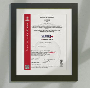 Depuis sa création, Com'Justine Evolution s'engage dans une démarche d'amélioration continue pour offrir des formations de qualité et un accompagnement personnalisé, parfaitement adaptés à vos besoins et aspirations. Aujourd’hui, cet engagement est reconnu et garanti par l’obtention de la certification QUALIOPI, gage de notre professionnalisme et de notre exigence.